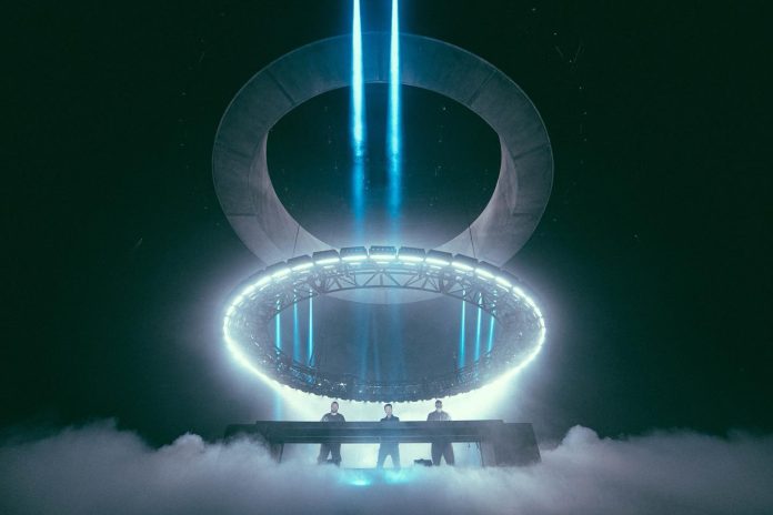 The staging & production was truly world-class. The stage was made of a huge concrete-looking structure along with light rings, all moving in space during the show. The light rings had different elements mapped and controlled in an impressive and creative way, resulting in different patterns and giving off euphoric sci-fi vibes. Heavy fog continuously pumped on stage, giving the impression that the trio was standing on a cloud or playing from Paradise. Along with the main signature elements, the crowd was treated with lasers, indoor pyro, flame throwers, and an overall world-class inventory of light shows and special effects.