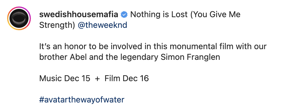 What are your thoughts on this upcoming The Weeknd/Swedish House Mafia/Avatar collaboration? One thing is for certain. The Swedish House Mafia x The Weeknd Collaboration is the gift that keeps on giving! It will be interesting to see the true impact the Swedish House Mafia will have on this film.