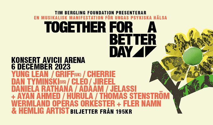 The Tim Bergling Foundation, named after the late DJ Avicii, has announced this year’s tribute concert to raise awareness about youth mental health and suicide prevention. ‘Together For A Better Day‘ will take place on December 6, 2023 at the Avicii Arena in Stockholm, Sweden and will feature performances by Yung Lean, Thomas Stenström, Cherrie, Griff, Cleo, Dan Tyminski and more.