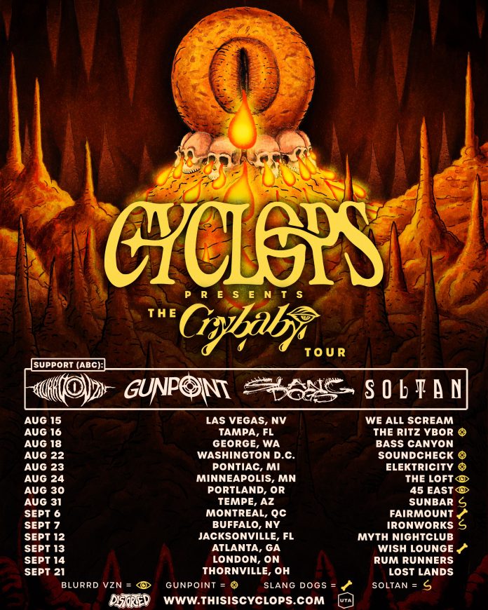 Cyclops has announced his debut headline tour – The Crybaby Tour. The fast rising Dubstep producer returns to familiar cities and new ones alike. As a headliner he will be bringing brand-new visual production, new music, and unreleased weapons. The charismatic producer has garnered a cult following, combining a love for heavy music, weird sounds, and an entertaining social media presence. This tour will feature a dynamic support lineup at various venues, including Blurrd Vzn, Gunpoint, Slang Dogs, and Soltan.