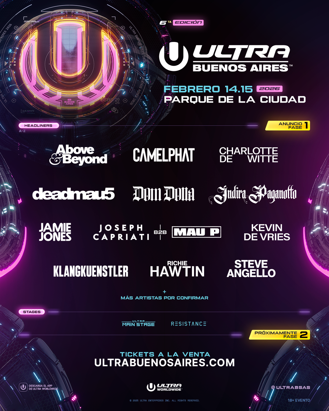South America celebrates again. ULTRA Buenos Aires is back in 2026, with a spectacular Phase 1 lineup just unveiled for its sixth edition. The festival is set to take place on Saturday, February 14th and Sunday, February 15th, 2026, at the iconic Parque de la Ciudad. Argentina will host one of the largest Ultra events to date in the region.
